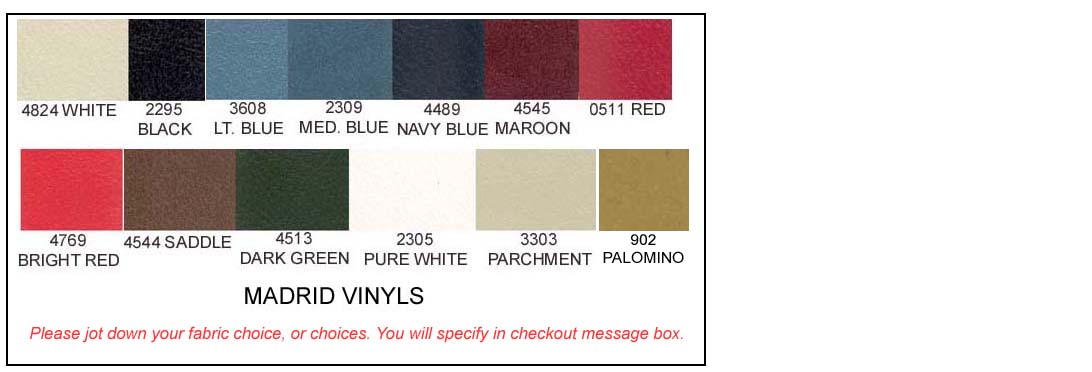 We have scanned the popular vinyl colors to assist you in selecting a color or colors.